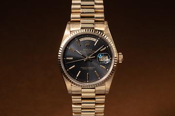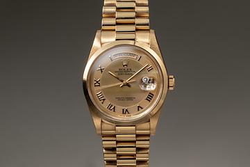 1999 Rolex 18k YG Day-Date 18208 with No Lume MOP Myriad Roman Numeral Dial