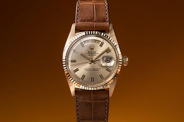 1967 Rolex 18K YG Day-Date 1803 Champagne Wide Boy Dial