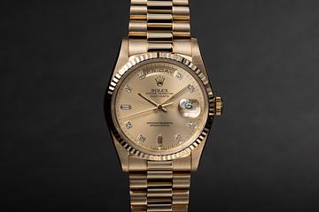 1989 Rolex 18K YG Day-Date 18238 Champagne Diamond Dial