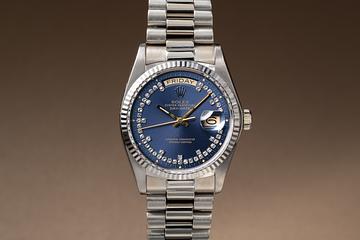 1979 Rolex 18K WG Day-Date 18039 Blue Diamond String Dial