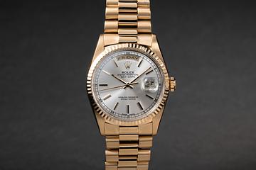 1994 Rolex 18K YG Day-Date 18238 Silver Dial with RSC Card & Leather Pouch