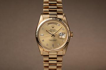 1990 Rolex 18K YG Day-Date 18238 Champagne Diamond Dial