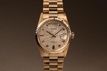 1994 Rolex 18K YG Day-Date 18238 Diamond Ruby Pave Dial with Box and Papers
