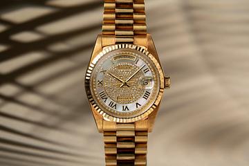 1990 Rolex 18K YG Day-Date 18238 Mother of Pearl Diamond Pave Dial