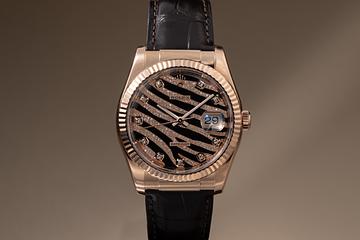 2018 Rolex 18K RG DateJust 116135 Diamond Pave Zebra Dial with Papers