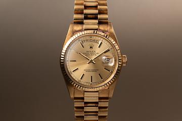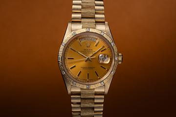 1986 Rolex 18K YG Day-Date 18038 Champagne Dial with Hang Tag