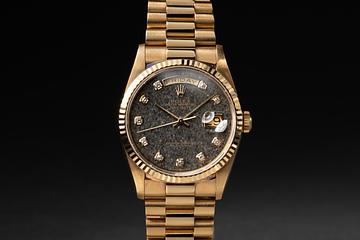 1994 Rolex 18K YG Day-Date 18238 Fossil Diamond Dial
