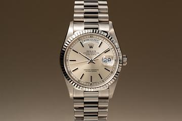 1999 Rolex 18K WG Day-Date 18239 Silver Dial