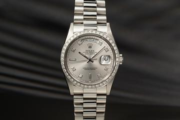 1993 Rolex Platinum Day-Date 18346 Silver Diamond Dial with Papers Originally sold in Karachi