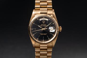 1986 Rolex 18K YG Day-Date 18038 Black Dial