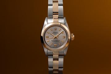 1995 Rolex Ladies Two-Tone Oyster Perpetual 67183 Grey 3, 6, 9 Dial