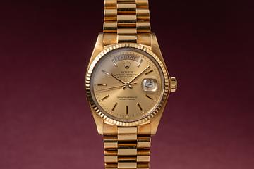 1987 Rolex 18K YG Day-Date 18038 Champagne Stick Dial