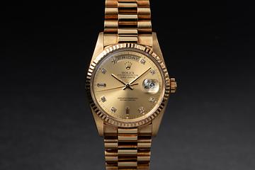 1990 Rolex 18K YG Day-Date 18238 Champagne Diamond Dial with Papers & Serialized Hang Tag