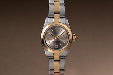 1998 Rolex Ladies Two-Tone Oyster Perpetual 67183 Grey 3, 6, 9 Dial