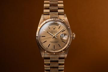 1987 Rolex 18K YG Bark Day-Date 18078 Champagne Dial