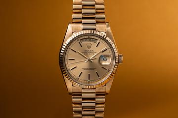 1990 Rolex 18K YG Day-Date 18238 Champagne Dial with Papers & Hang Tag