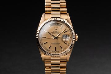 1990 Rolex 18K YG Day-Date 18238 Champagne Dial with Papers