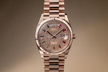 2021 Rolex 18K RG Day-Date 128235 Pave Rainbow Dial with Box & Papers