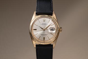 1962 Rolex 18K YG DateJust 1601 Silver Doorstop Dial with Service Papers