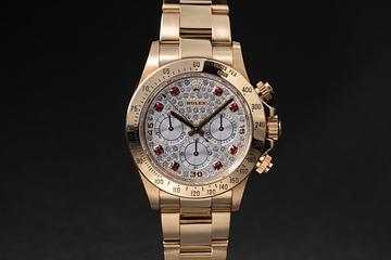 1997 Rolex 18K YG Daytona 16528 Diamond & Ruby Dial with Box and Papers and RSC