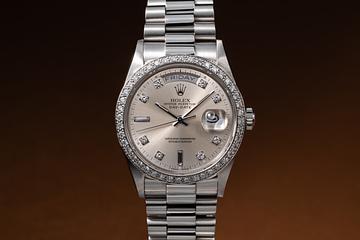 1988 Rolex Platinum & Diamond Day-Date 18046 Silver Dial with Papers sold in Dubai