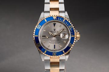 2005 Rolex Two-Tone Submariner 16613 Slate Serti Dial with Box and Papers