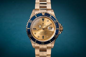 1991 Rolex 18K YG Submariner 16618 Champagne Serti Dial