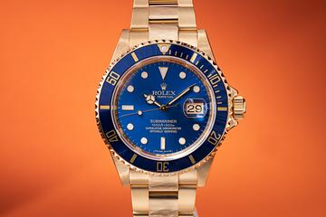 2007 Rolex 18K YG Submariner 16618 Blue Dial with Rolex Service Papers