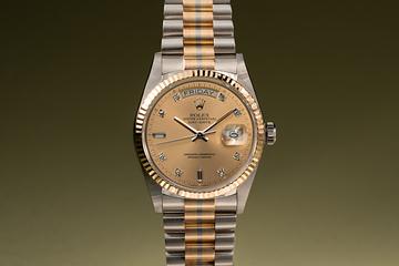 1985 Rolex Tridor Day-Date 18039 Salmon Diamond Dial with Papers