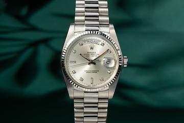 1984 Rolex 18K WG Day-Date 18039 Silver Diamond Dial