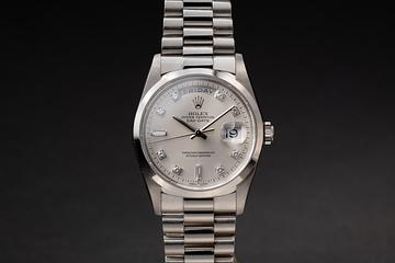 1995 Rolex Platinum Day-Date 18206 Silver Diamond Dial with Papers and Rolex Service Papers