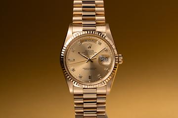 1989 Rolex 18K YG Day-Date 18238A Champagne Diamond Dial