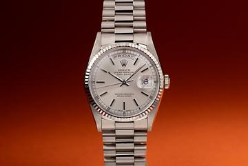 1996 Rolex 18K WG Day-Date 18239 Silver Dial