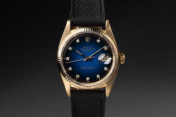 1982 Rolex 18K YG Day-Date 16018 Blue Vignette Diamond Dial