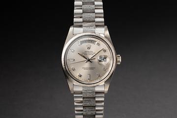 1984 Rolex 18K WG Day-Date 18079 Silver Diamond Dial