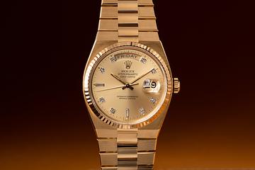 1979 Rolex 18K YG OysterQuartz Day-Date 19018A Champagne Diamond Dial with Service Card
