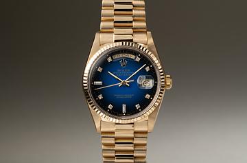 1987 Rolex 18K YG Day-Date 18038 Blue Vignette Diamond Dial with Box