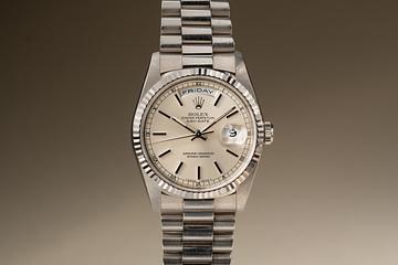 1991 Rolex 18K WG Day-Date 18239 Silver Dial with Box and Papers