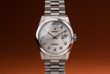 2000 Rolex 18K WG Day-Date 118209G Jubilee Diamond Dial with Papers