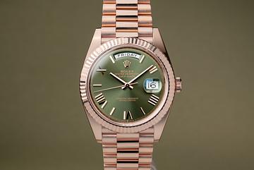 2019 18K RG Day-Date 228235 Olive Green Dial with Box and Papers