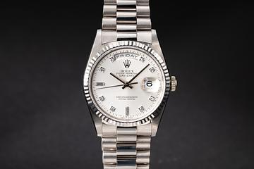 1995 Rolex 18K WG Day Date 18239 Silver Diamond Dial with Service Papers