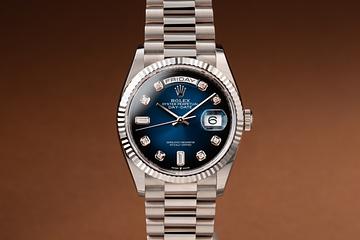2020 18K WG Rolex Day-Date 128239 Blue Ombre Diamond Dial with Box and Papers