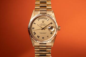 1996 Rolex 18K YG Day-Date 18238 Matte Champange Roman Numeral Dial Full Set