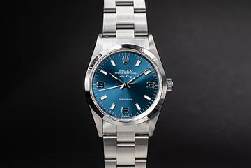 1999 Rolex AirKing 14000 Blue 3-6-9 Dial with Service Papers