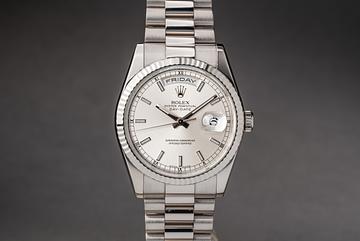 2000 Rolex 18K WG Day-Date 118239 Silver Dial