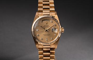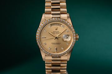 1988 Rolex Diamond Bezel Day-Date 18348 Champagne Diamond Dial