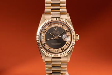 1993 Rolex 18K YG Day-Date 18238 Grey Diamond Arabic Dial