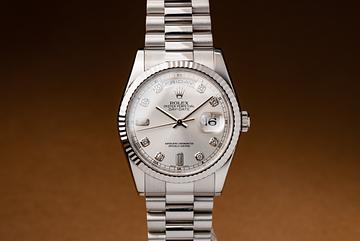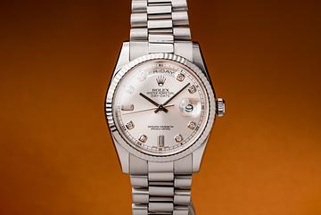 2004 Rolex 18K WG Day-Date 118239A Silver Meteorite Coffin Dial
