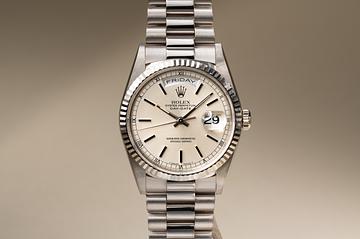 1996 Rolex 18K WG Day Date 18239 Silver Dial with Papers