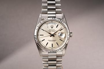 1991 Rolex 18K WG Day-Date 18239 Silver Dial